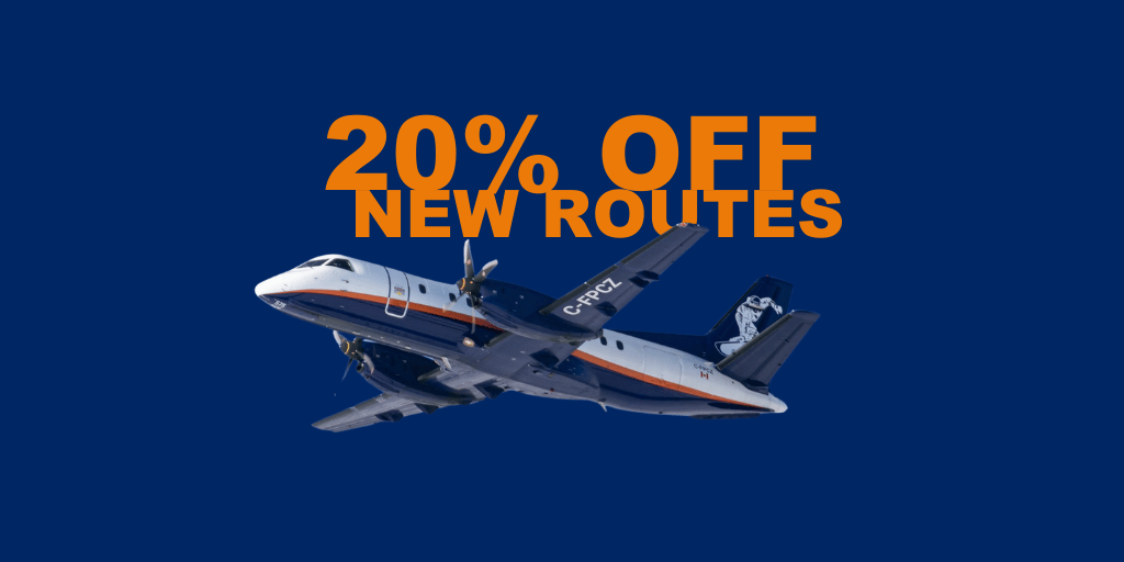 Enjoy 20% OFF on flights between Cranbrook and Kelowna, including connections to Nanaimo, Victoria, and Comox, plus flights between Quesnel and the rest of our network.